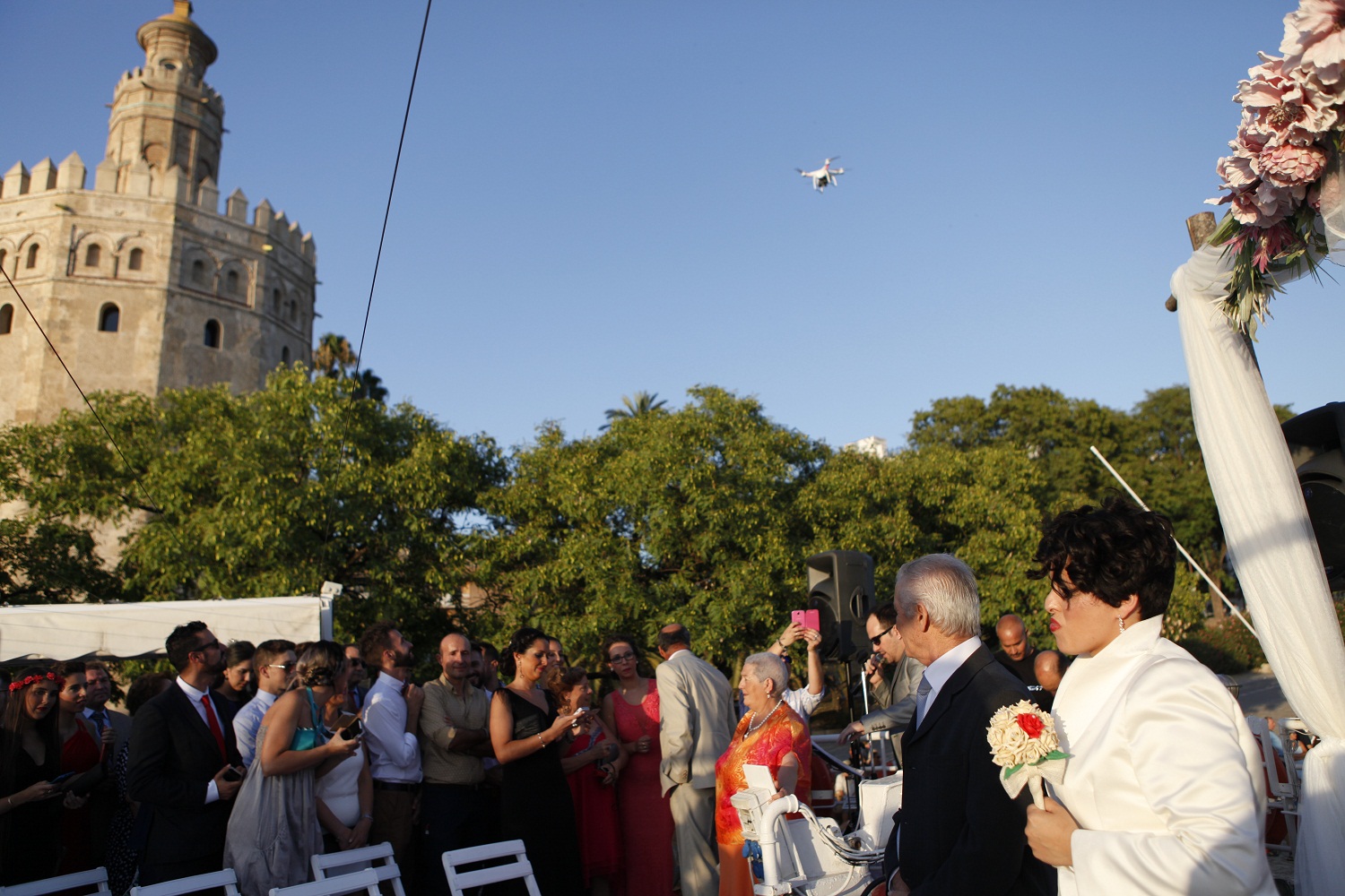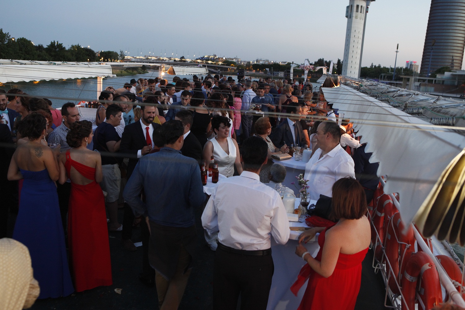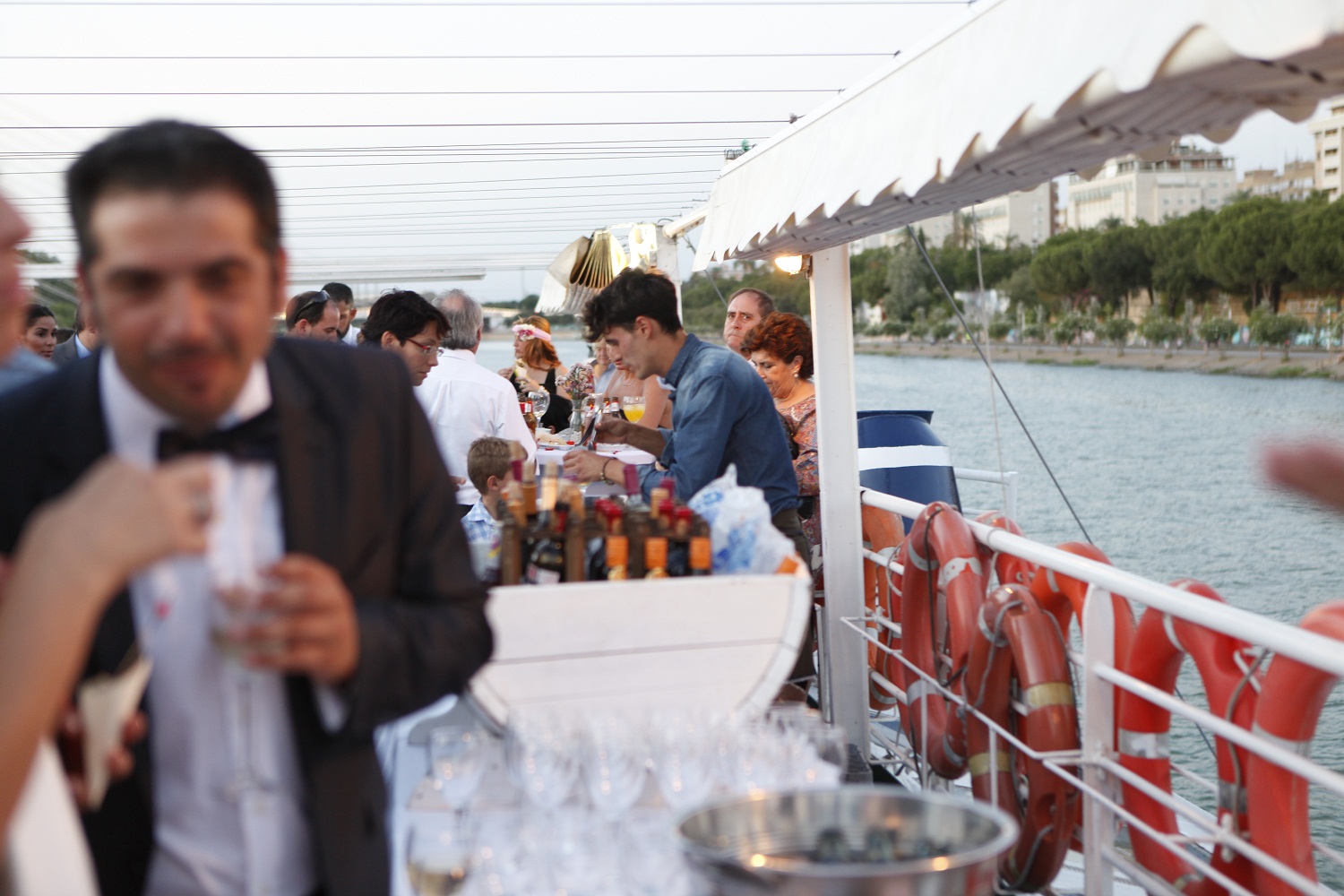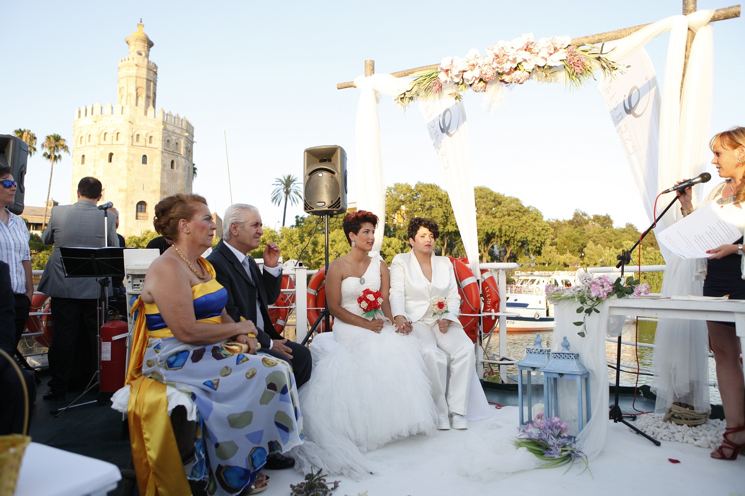 18 Sep Bodas en el Guadalquivir con Esencia 09.18.2015 marco Bodas con Esencia 0 En una despejada tarde de verano, rodeadas de los más queridos y arropadas por el Guadalquivir, tuve la suerte de imaginar y dar forma a la boda de Ana y Melisa. Suerte porque uno nota cuando es acogido e invitado a participar de algo especial, y cargado de responsabilidad, por estar a la altura de las circunstancias. UNA BODA DE CHICAS Sobre el rio Guadalquivir, se celebró una emotiva ceremonia que dio paso al cocktail visitando Sevilla en barco. Despues desembarcamos en el Pabellón de la Navegación donde pasaron una noche fantastica. En definitiva una celebración Especial, diferente y única…,una celebración con Esencia….. Tags:boda en el palmar, bodas diferentes, bodas en sevilla, bodas Extremadura, bodas Merida, bodas playeras, esencia eventos, esencia eventos con alma, eventos esencia, wedding beach