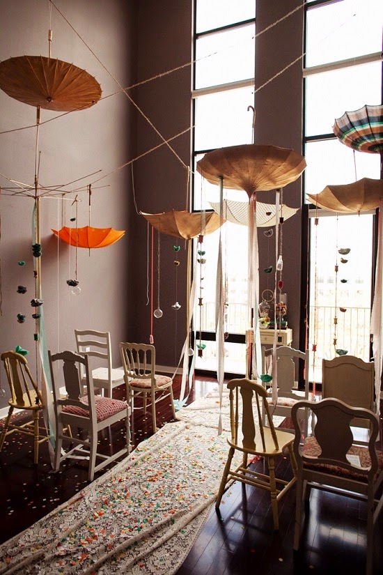 Las sombrillas son un elemento de decoración muy versátil que nos permite rellenar espacios grandes haciéndolos más cálidos. Son además una opción muy original y que se adapta a diferentes estilos.